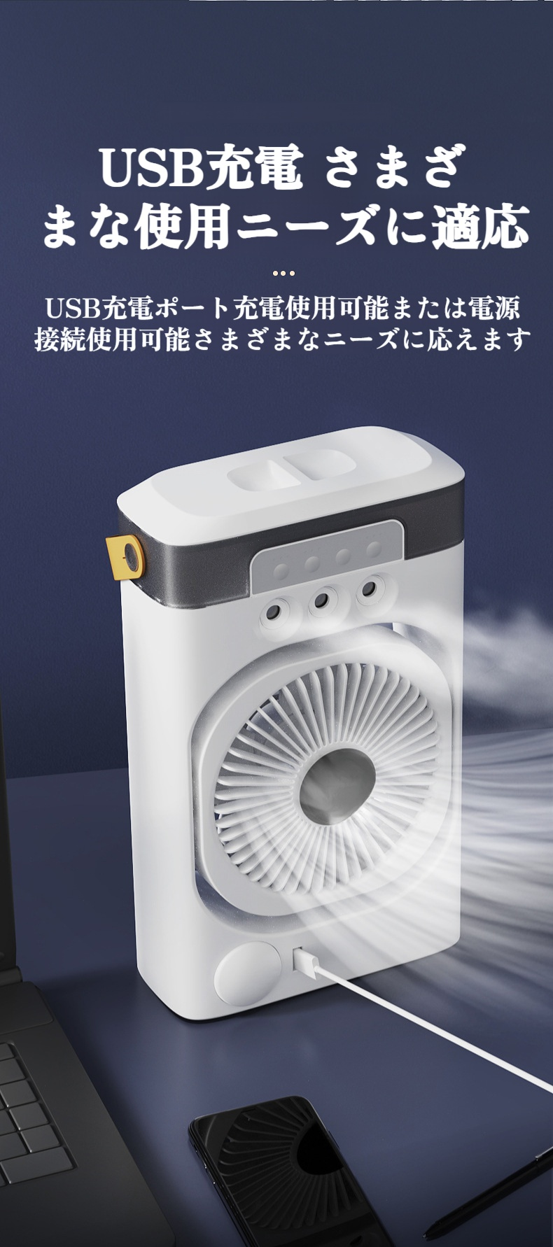 卓上扇風機 小型 充電式 扇風機 静音 LEDライト付き 強力 コンパクト USB扇風機 ミニ デスクファン サーキュレーター 壁掛け オフィス/寝室/キッチン/アウトドア用